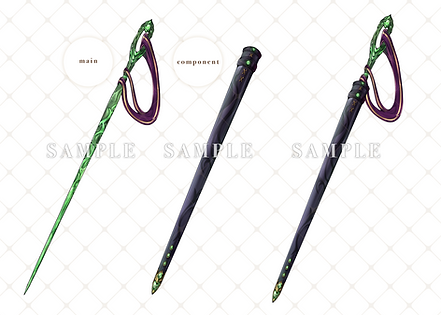 Components of the main weapon : For example, if you order a sword design, the other component is the sheath. (sheaths, quivers, etc.)
